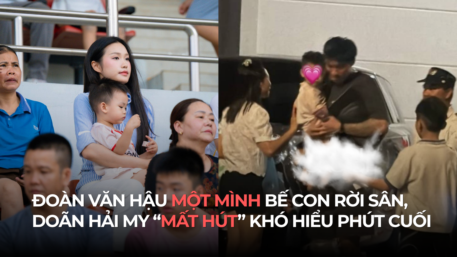 Tối 12/4, sau trận hòa 1-1 giữa CAHN và PVF-CAND, Đoàn Văn Hậu gây chú ý khi một mình bế con trai rời sân với chiếc chân phải băng kín đá. Đáng chú ý, dù đã có mặt trên khán đài cổ vũ chồng giữa tâm điểm ồn ào đời tư, nhưng lúc ra về Doãn Hải My lại bất ngờ “mất hút”, để mặc ông xã một mình xoay sở cùng con nhỏ và chỉ nhận được sự hỗ trợ từ các em vợ khi về đến nhà.