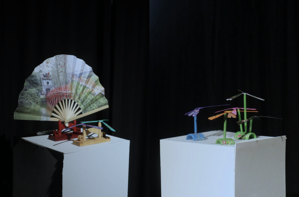 Bên cạnh đó, dự án còn tổ chức triển lãm về quạt giấy Chàng Sơn và chuồn chuồn tre Thạch Xá – hai sản phẩm thủ công đặc trưng của vùng đất Thạch Thất, Hà Nội. Không gian triển lãm tái hiện nét đẹp của làng nghề qua những sản phẩm thủ công tinh xảo, đồng thời cung cấp thông tin về lịch sử, quy trình sản xuất và ý nghĩa văn hóa của từng sản phẩm.