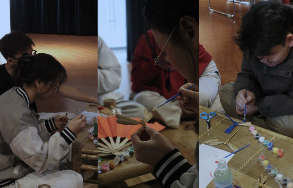Đặc biệt, chương trình còn có workshop trải nghiệm làm quạt giấy và chuồn chuồn tre, nơi sinh viên có cơ hội trực tiếp tham gia vào quá trình tạo ra những sản phẩm thủ công truyền thống. Thông qua hoạt động này, người tham gia không chỉ được học hỏi kỹ thuật cơ bản mà còn cảm nhận được sự tỉ mỉ, khéo léo và tâm huyết của các nghệ nhân trong từng công đoạn.