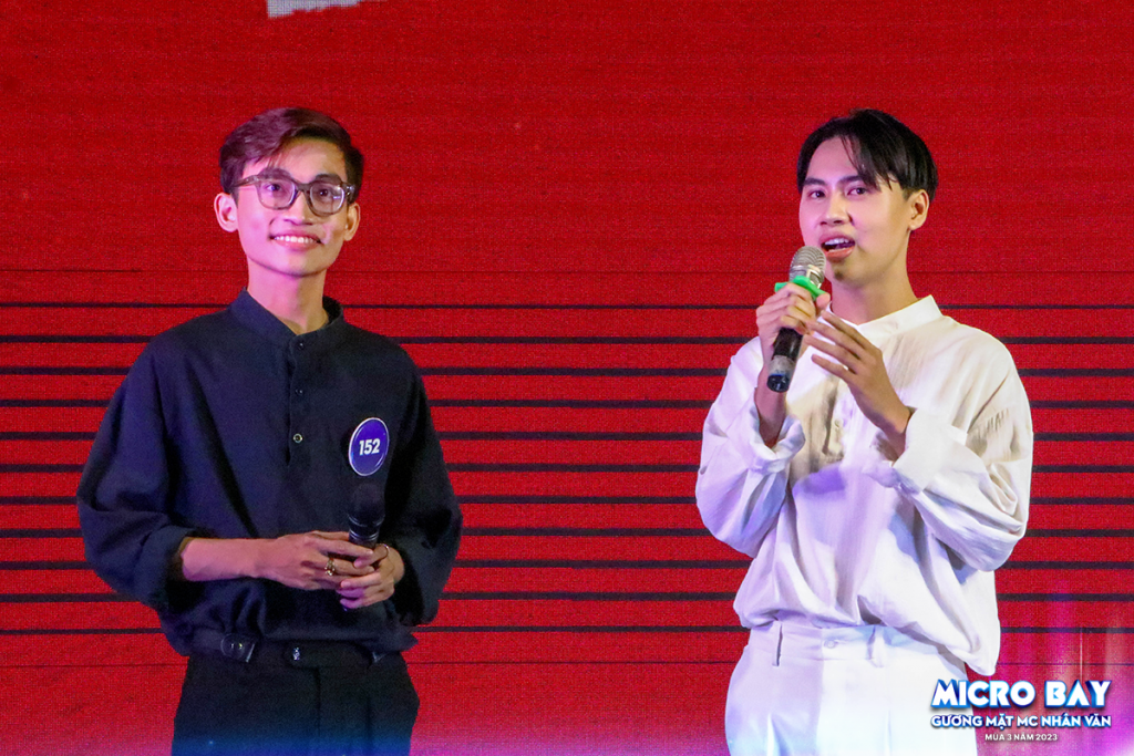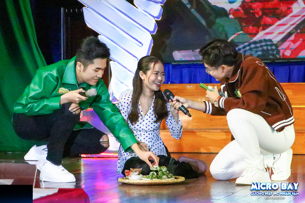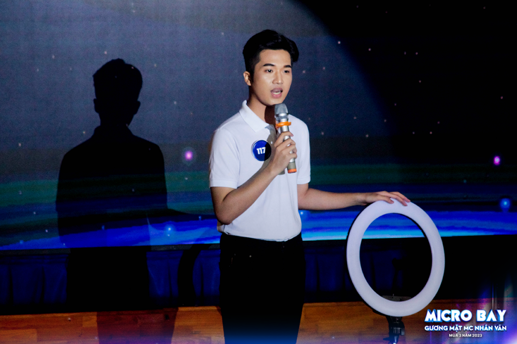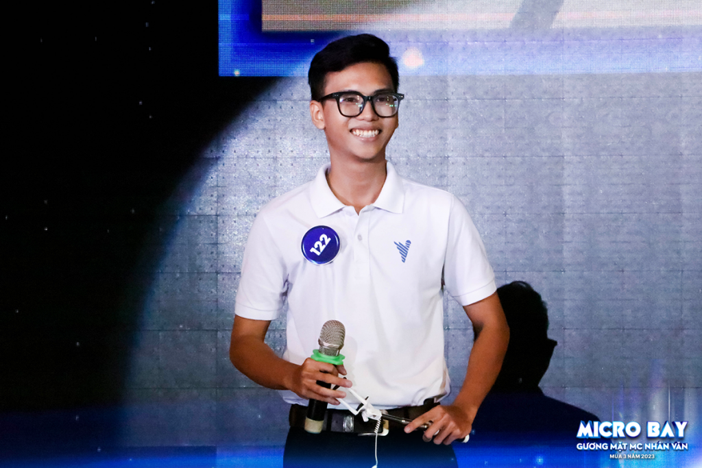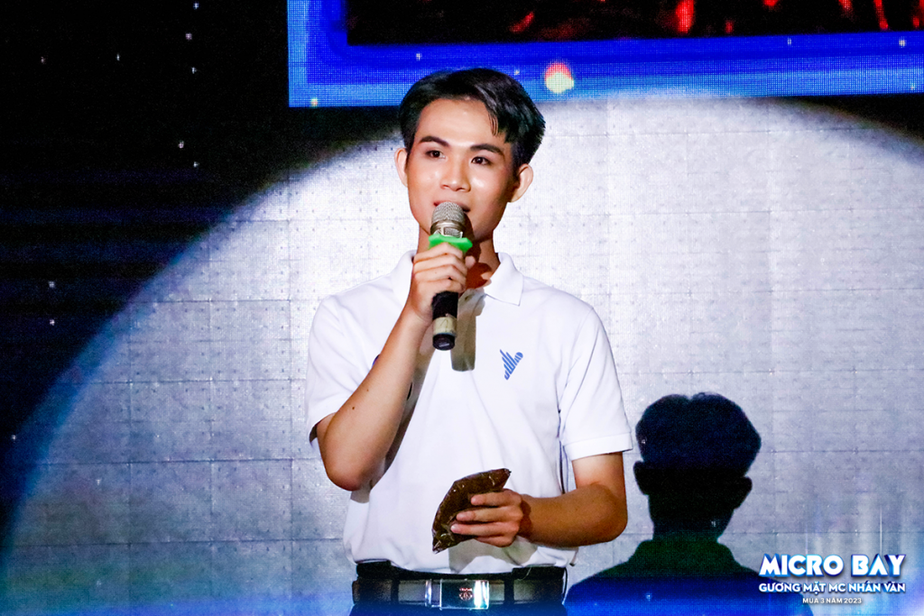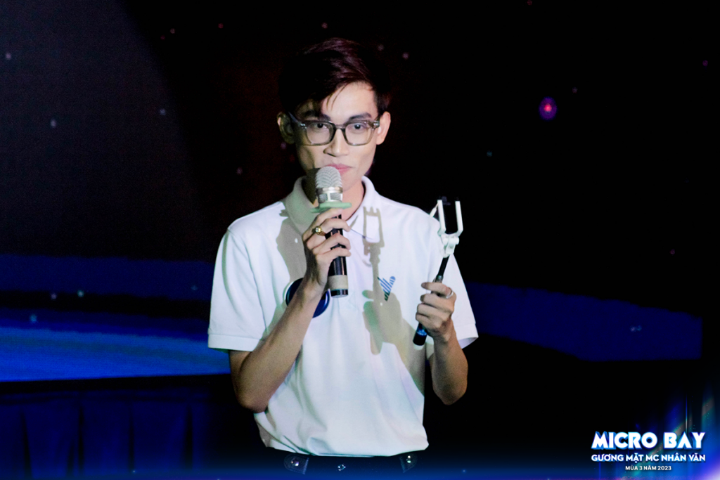 Bùi Thanh Vũ luôn tràn đầy năng lượng trong cả hai phần dự thi của mình. Nguồn: BTC MICRO BAY – Gương mặt MC Nhân văn