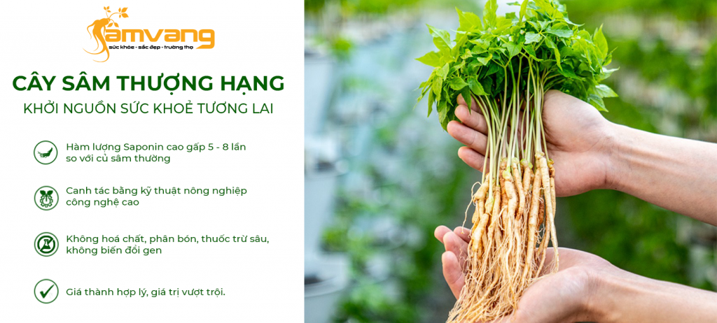 Sâm tươi đến từ Sâm Vàng mang giá trị dinh dưỡng cao gấp 8 lần do sử dụng kĩ thuật nông nghiệp kỹ thuật cao. Không sử dụng hóa chất, phân bón, thuốc trừ sâu và biến đổi gen. Các sản phẩm từ Sâm Vàng có thể ăn phần rễ, thân thậm chí là lá bởi quy trình sản xuất an toàn.