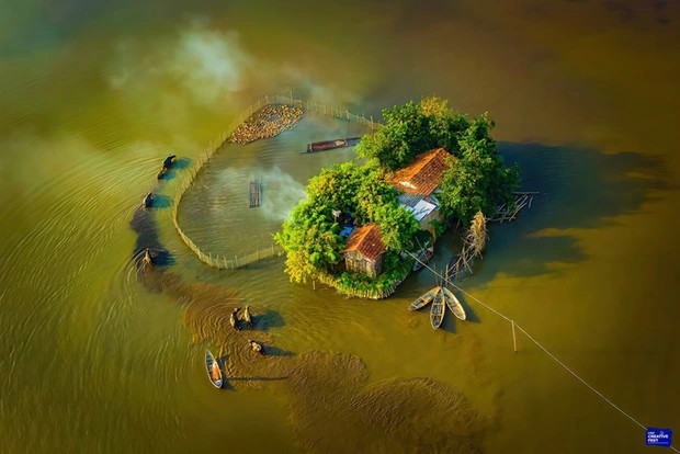 Giữa dòng sông Diêm Điền, xã Tịnh Hoà, TP Quảng Ngãi (tỉnh Quảng Ngãi), ngôi nhà hình trái tim ẩn ẩn hiện hiện cùng với đàn trâu, đàn vịt lượn quanh. Tất cả là tài sản, là tình yêu của cặp vợ chồng U60 thuần nông chất phác, được nhiếp ảnh gia Alex Cao gói gọn trong một bức hình mang tên “The Buffalo Man” (Người đàn ông chăn trâu). Tác phẩm đã đạt giải Highly Commended trong cuộc thi Drone thế giới – là một trong những cảnh đẹp được các hãng thông tấn lớn đăng tải.