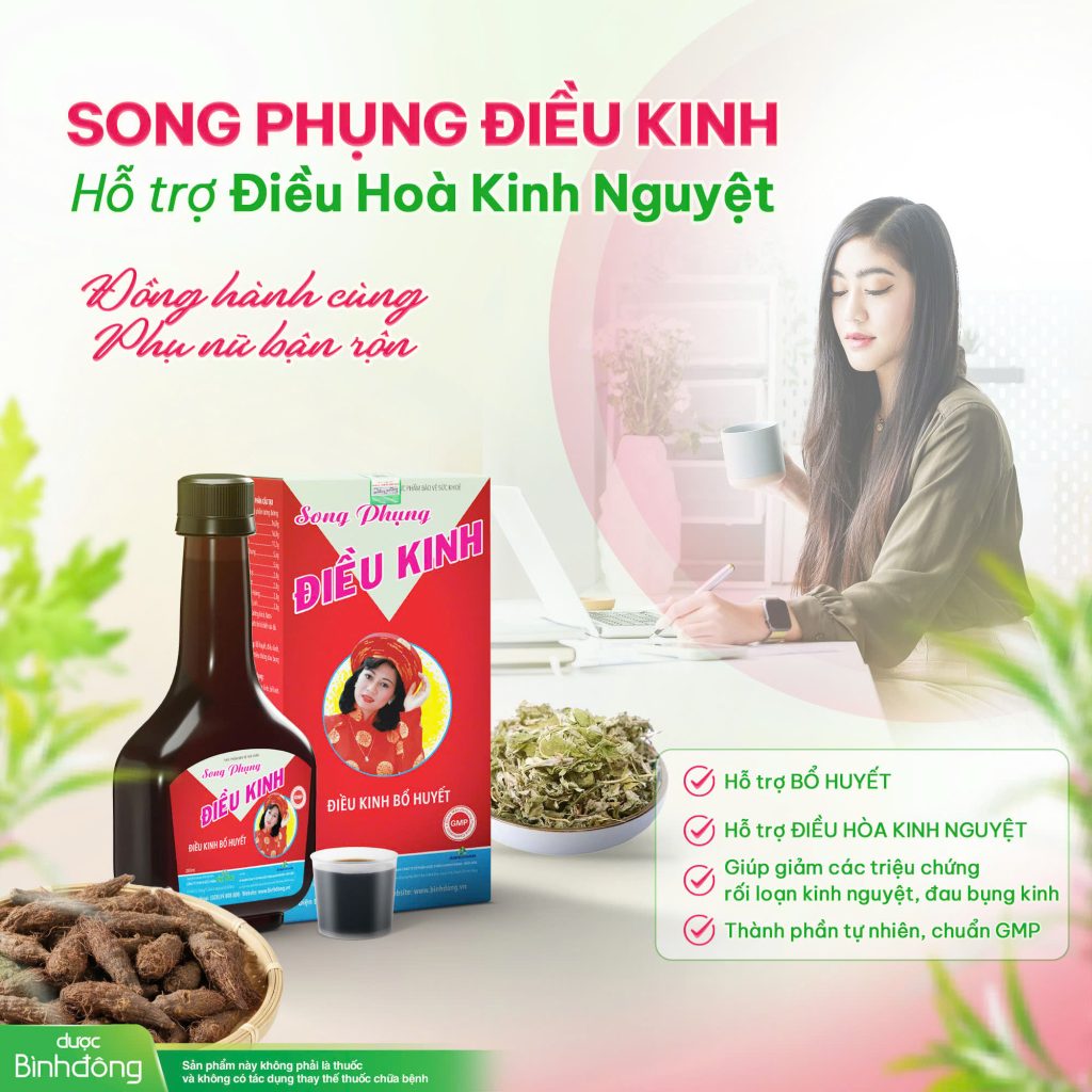 Song Phụng Điều Kinh với 75 năm uy tín của Dược Bình Đông là người bạn đồng hành đáng tin cậy, giúp bổ huyết, giảm các triệu chứng khó chịu, từ đó cải thiện giấc ngủ và tâm trạng.