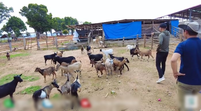 Anh Thế đang “giới thiệu” 1 thành viên mới của đàn dê với Lôi Con