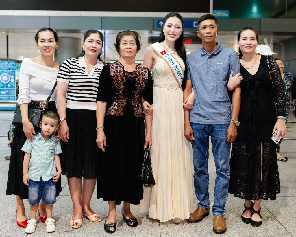 Gia đình của Hoa hậu Kiều Duy cũng có mặt từ sớm tại sân bay để động viên cô trước hành trình quan trọng. Đặc biệt, ngày 11/11 còn là ngày sinh nhật của mẹ cô. Nhân dịp này, Kiều Duy cùng các Hoa, Á hậu thuộc công ty quản lý đã cùng nhau chuẩn bị một chiếc bánh kem để chúc mừng sinh nhật mẹ, tạo nên một khoảnh khắc đong đầy cảm xúc.