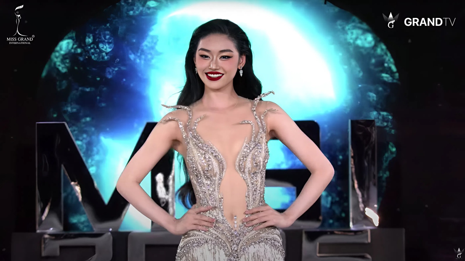 Ở phần đầu, thí sinh Miss Grand International 2025 lần lượt giới thiệu bản thân và trình diễn trang phục dạ hội tự chọn. Hoa hậu Yến Nhi diện thiết kế bắt mắt của NTK Thượng Gia Kỳ. Bộ trang phục được đính kết cầu kỳ, điểm nhấn tua rua lấp lánh tạo hiệu ứng chuyển động, tôn vóc dáng và vẻ gợi cảm. Cô nhận được nhiều lời khen với layout tóc uốn vuốt ngược, son môi đỏ. Phần trang điểm và làm tóc đều do Yến Nhi tự thực hiện, cho thấy sự khéo léo và chủ động của người đẹp khi chinh chiến quốc tế.