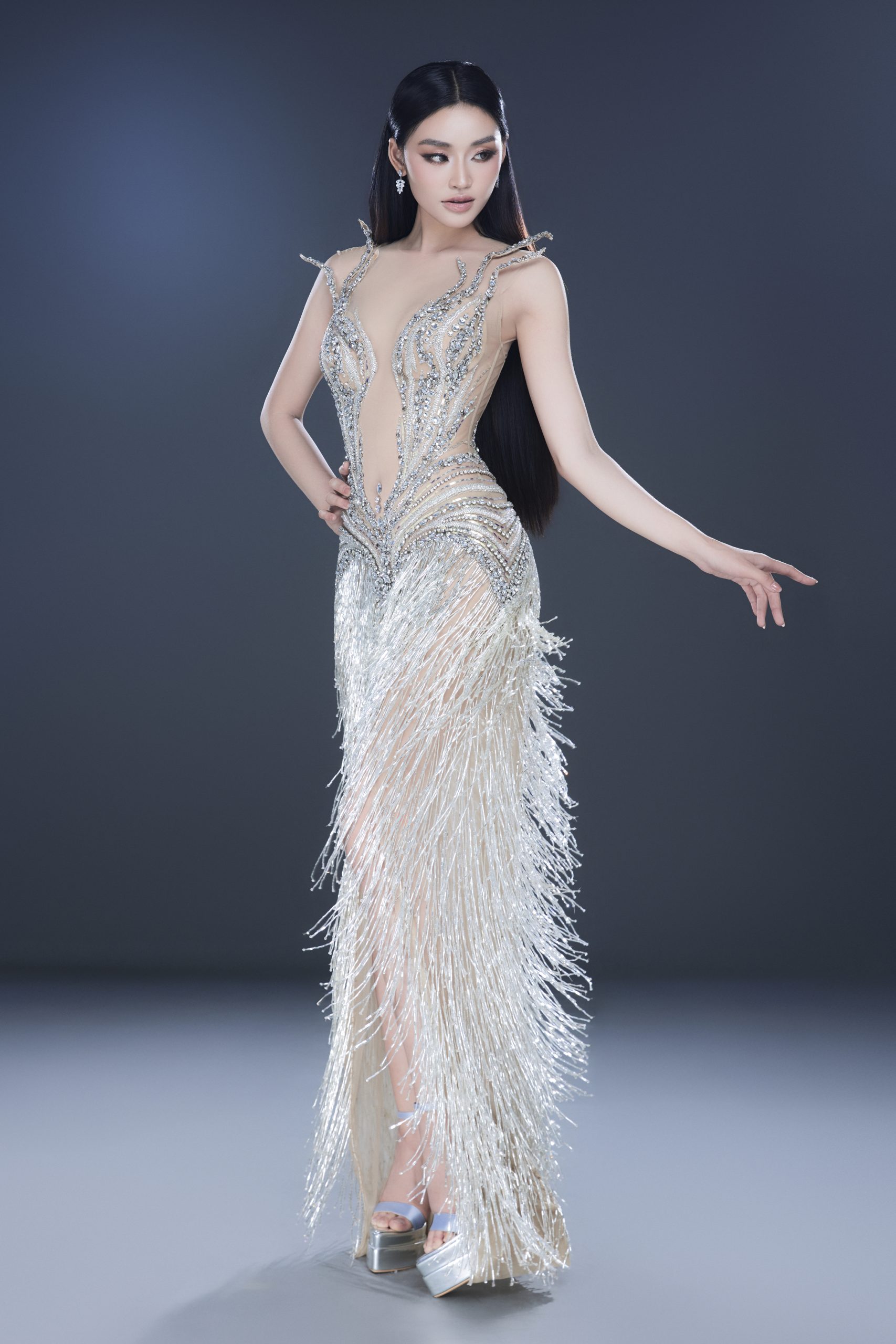 Ngay sau đó, Hoa hậu Yến Nhi cùng dàn thí sinh bước vào phần trình diễn trang phục truyền thống Thái Lan do ban tổ chức chuẩn bị. Đại diện Việt Nam xuất hiện với thiết kế quấn chéo vai, mang tông màu tím chủ đạo kết hợp hoạ tiết màu vàng cầu kỳ, sang trọng. Hoa hậu Yến Nhi đội vương miện “Solara Aurelia – Hồng Nhật Kim Quang”, bước đi kiêu sa và quyền quý.