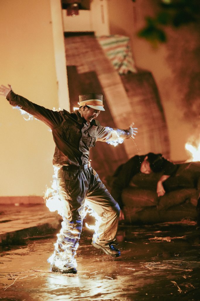 Đặc biệt, đối với phân cảnh này, Diệu Nhi đã từ chối nhờ cascadeur đóng thế mà “chịu chơi” tự mình hóa thân vào vai diễn khiến đạo diễn Nhất Trung và mọi người đều sợ sệt. Trong đó không thể thiếu Anh Tú, anh không giấu được sự căng thẳng và lo lắng cho sự an toàn của vợ: “Từ trước đến nay, không có nhiều diễn viên Việt Nam tự đóng cảnh bị cháy như thế này. Họ thường sử dụng cascadeur cho đến khi xong xuôi hết mới vào. Trong phim, Diệu Nhi phải tự thực hiện các cảnh này. Bản thân tôi rất lo lắng nhưng hy vọng mọi chuyện diễn ra một cách an toàn”.