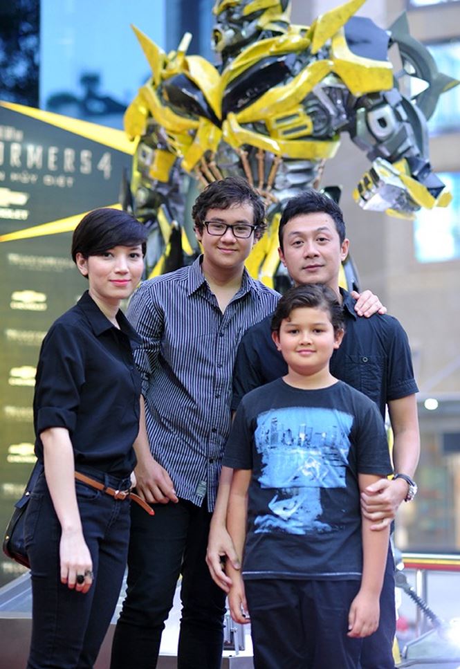 Một năm trước đó, nam MC sinh năm 1974 cũng dẫn hai con trai lai Tây đi xem phim “Despicable Me 2” (Kẻ cắp Mặt trăng 2). Cả hai đều có nét giống Anh Tuấn, đặc biệt là cậu cả.