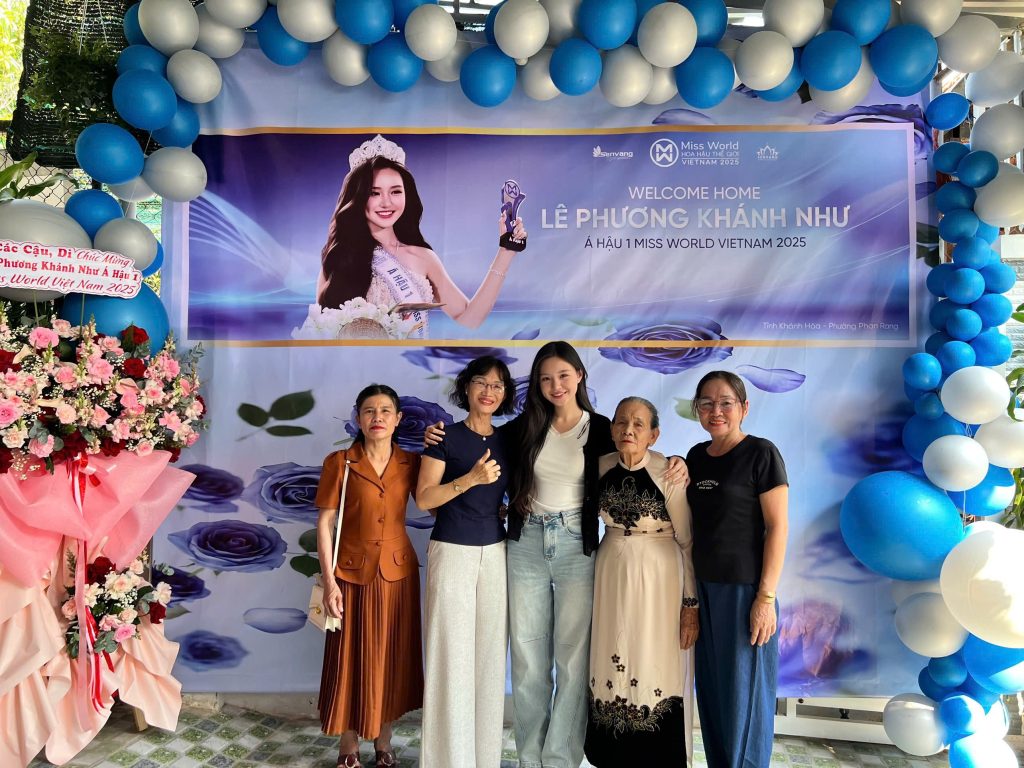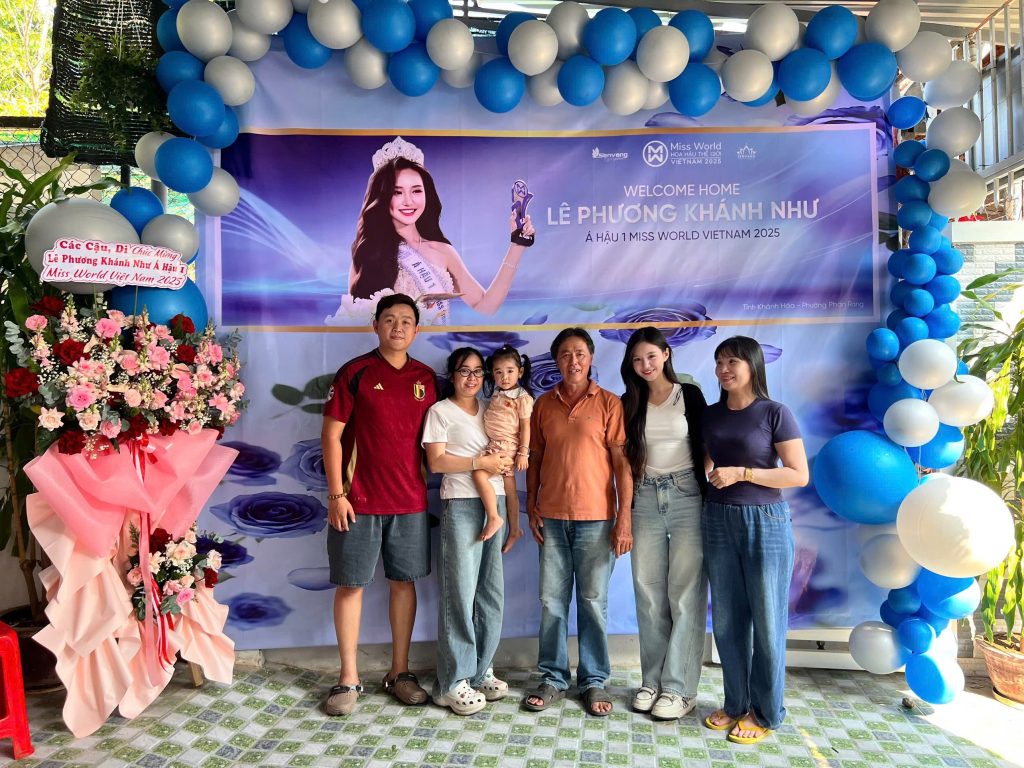 Á hậu 1 Lê Phương Khánh Như trở về ngôi nhà nằm trong con hẻm ở đường Trần Phú, thành phố Phan Rang. Gia đình đã chuẩn bị một bữa tiệc ấm cúng, in băng rôn lớn để chúc mừng. Ba mẹ, người thân và hàng xóm đều có mặt để đón con gái về nhà.