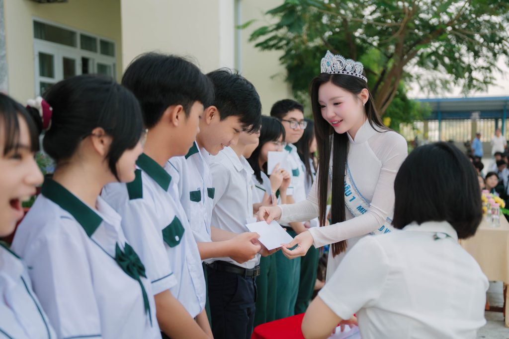 Á hậu Khánh Như về quê nấu bún riêu, trao học bổng tại trường cũ