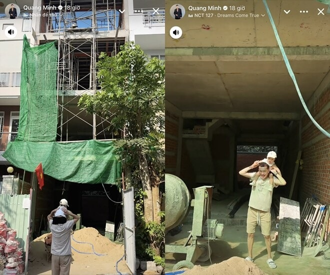 Diễn viên Quang Minh cùng con trai đến thăm tổ ấm “Minh Chi’s House” đang xây dựng – Nguồn: Báo Nghệ An