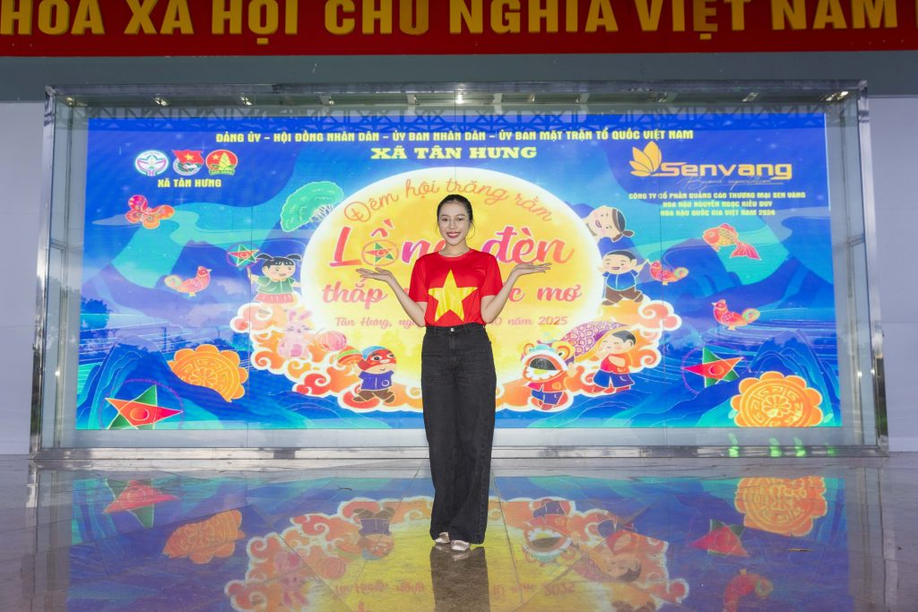Kiều Duy tiếp tục mang những phần quà là nhu yếu phẩm, bánh trung thu và lồng đèn gửi đến các em nhỏ có hoàn cảnh khó khăn trên địa bàn xã Tân Hưng. Tại đây, sự kiện trao tặng bất chợt gặp mưa lớn nhưng ban lãnh đạo cùng Hoa hậu Kiều Duy nỗ lực trao gửi những phần quà đến các em nhỏ.