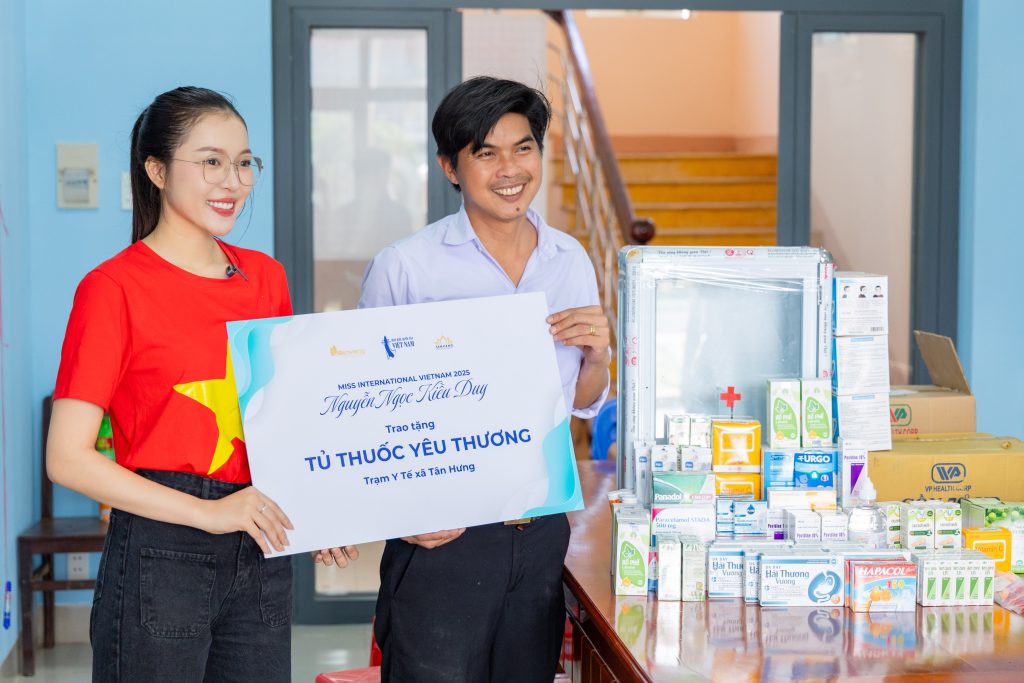 Thêm vào đó, Miss International Vietnam Kiều Duy cũng đã trao tặng tủ thuốc đến Trạm Y tế xã Tân Hưng, tỉnh Tây Ninh (trước đây là Long An), cô cho biết bản thân cảm thấy rất vui khi các nhân viên y tế trạm bày tỏ sự nhẹ nhõm vì tủ thuốc và các vật tư y tế đến vừa kịp lúc để bổ sung cho kho thuốc tại trạm.