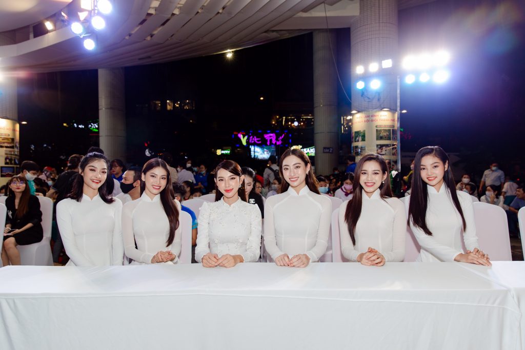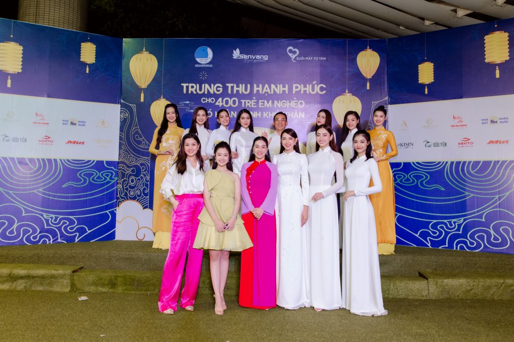 Hoa hậu Thùy Tiên cùng dàn người đẹp khác cùng diện những bộ áo dài trắng tinh khôi đến trong buổi lễ. Với sắc trắng ngọt ngào đã giúp các nàng hậu vô cùng rực rỡ nhưng cũng không phần kém cạnh nhau để trao tặng các phần quà đến các em nhỏ.