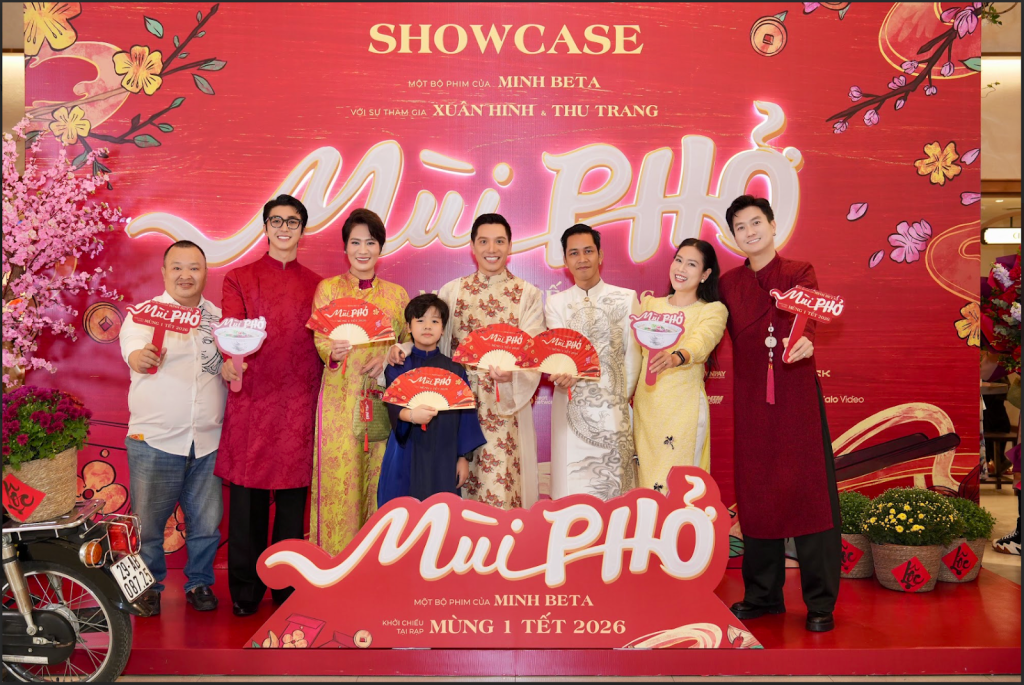 Tại Showcase Mùi Phở, không gian được dàn dựng và trang trí như một “góc Tết” giữa lòng Hà Nội mang đậm tinh thần truyền thống. Sự xuất hiện của nhiều nghệ sĩ và khách mời trong trang phục áo dài góp phần tạo nên không khí trang trọng, gần gũi và giàu cảm xúc.