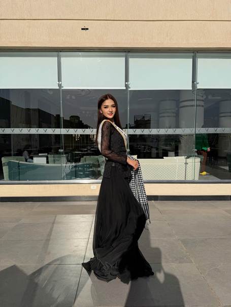 Ngay từ sáng đầu tiên đáp chuyến bay xuống Ai Cập, Thu Ngân đã tinh tế ghi điểm tuyệt đối khi lựa chọn bộ áo bà ba truyền thống đi kèm chiếc khăn rằn. Đây là món quà “xin vía” đầy ý nghĩa từ người tiền nhiệm, Hoa hậu Bảo Ngọc. Hình ảnh cô gái Việt Nam dịu dàng, mộc mạc giữa vùng đất kim tự tháp đã nhanh chóng gây bão vì sự gần gũi và niềm tự hào dân tộc.