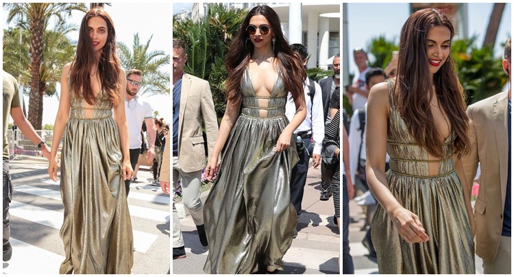 Minh tinh hàng đầu Bollywood Deepika Padukone diện đầm lấp lánh, xẻ sâu trông vô cùng gợi cảm tại một khách sạn ở Cannes.
