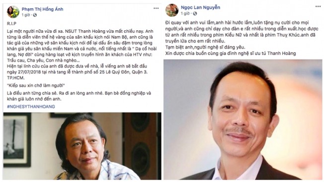 NSƯT Thanh Hoàng đã qua đời ở tuổi 55 do căn bệnh ung thư. Nhiều bạn bè, đồng nghiệp vẫn chưa hết bàng hoàng khi nhận được tin này.
