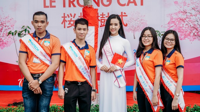 Á hậu Thúy An đã về thăm trường Đại học Công nghệ Thành phố Hồ Chí Minh ngay sau khi đạt được danh hiệu.