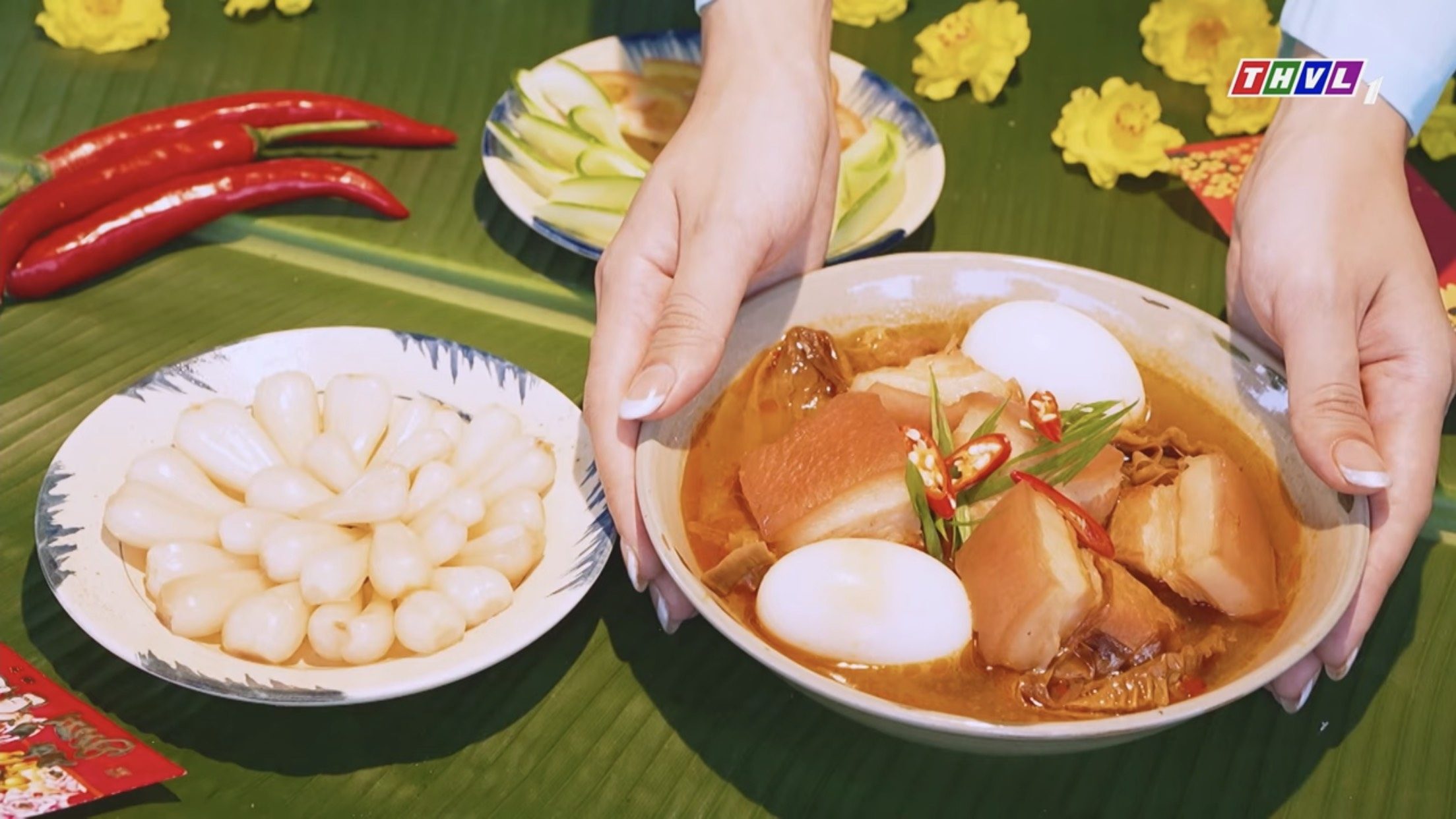 Mâm cơm ngày Tết cổ truyền ở miền nam không thể thiếu đi nồi thịt kho trứng thơm ngon. Vị thơm của thịt, vị ngọt của nước thịt ăn kèm với một ít củ kiệu sẽ khiến cho bữa ăn ngày Tết thêm đậm đà. Hoa hậu Mai Phương đã có dịp “xông đất” chương trình Hành trình hương vị và đầu bếp Ngọc Thuận vào dịp Mùng 1 Tết Quý Mão để “học lỏm” bí quyết nấu món thịt kho trứng.