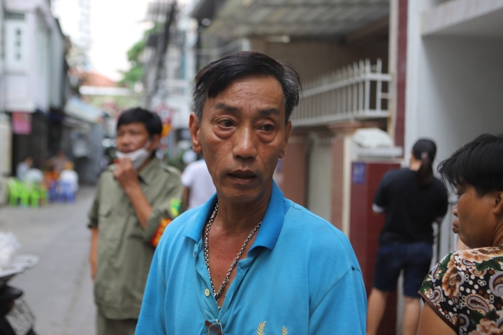Gương mặt bần thần, mặc chiếc áo thun còn ám mùi khói, ông Nguyễn Văn Nghĩa (57 tuổi, Tổ trưởng Tổ dân phố 9, sống cách vụ cháy khoảng 50m) nhớ lại thời điểm kinh hoàng xảy ra vụ cháy. Khoảng 0h30, vợ chồng ông Nghĩa vừa ngủ thì ngửi thấy mùi khét và nghe thấy tiếng kêu.