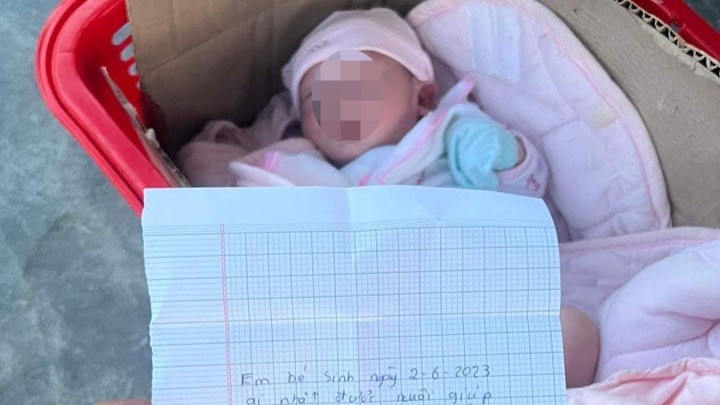 Theo đó, khoảng 5 giờ cùng ngày, người dân nghe tiếng khóc trẻ em phát ra tại khu vực ngã ba đường thuộc tổ 5, thôn Thái Đông, xã Bình Nam. Khi người dân lại gần phát hiện một bé trai khoảng 10 ngày tuổi quấn trong một khăn màu hồng nhạt…được đặt trong thùng giấy. Cạnh thùng giấy có một giỏ nhựa và một lá thư có nội dung “em bé sinh ngày 2-6-2023, ai nhặt được nuôi giúp cho bé khôn lớn, ăn học đầy đủ”.