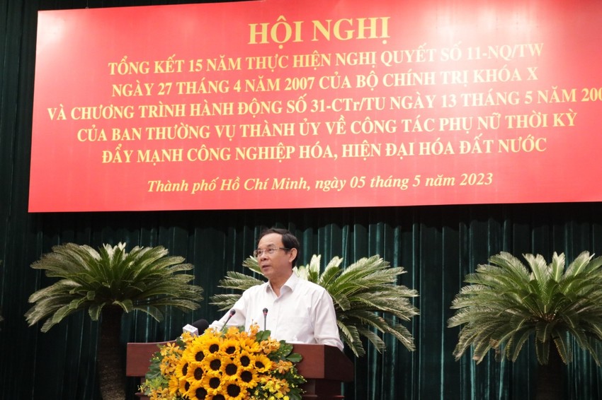 Bí thư Nguyễn Văn Nên khẳng định, TP.HCM rất quan tâm đến việc tạo cơ chế, chính sách để tạo điều kiện cho phụ nữ yên tâm, tiếp tục cống hiến.