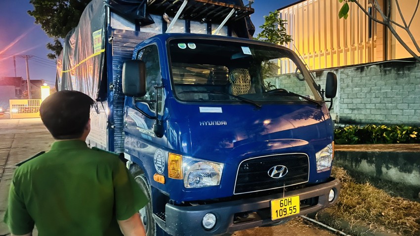 Qua kiểm tra, lực lượng công an còn phát hiện trên xe có 3.286 kg chất thải rắn công nghiệp thông thường. Nhưng chiếc xe tải này không đáp ứng yêu cầu kỹ thuật về bảo vệ môi trường, cụ thể: thùng của xe tải không phủ bạt kín che nắng, mưa trong quá trình thu gom, lưu chứa, vận chuyển chất thải rắn công nghiệp thông thường.