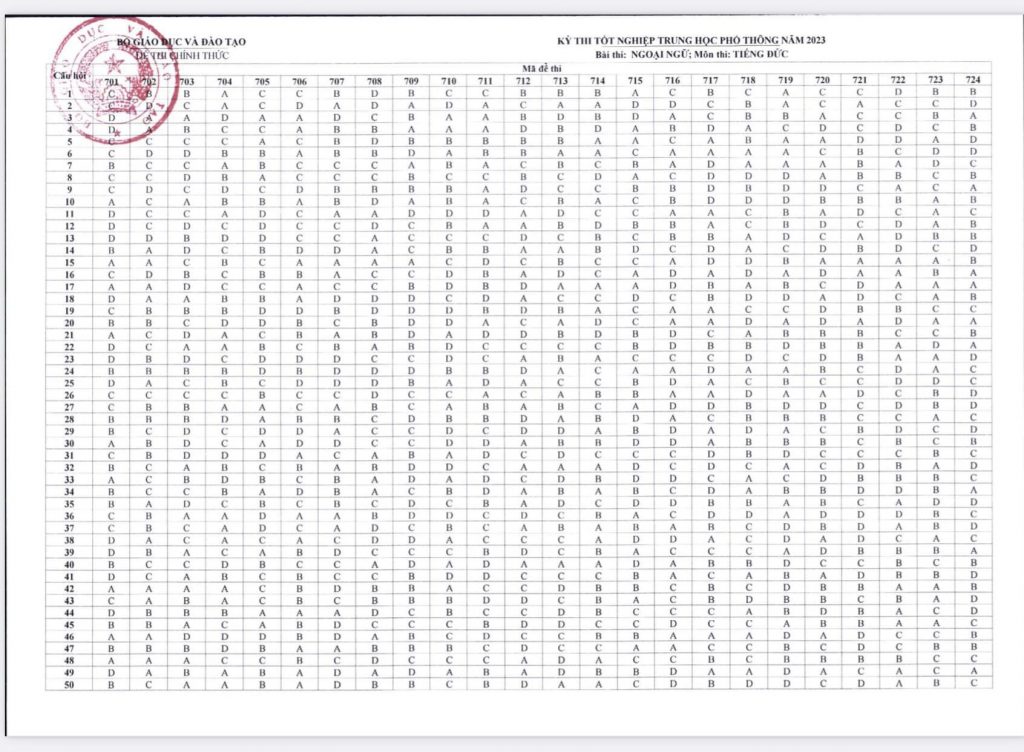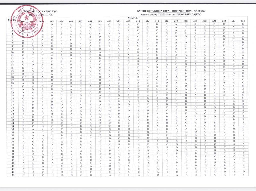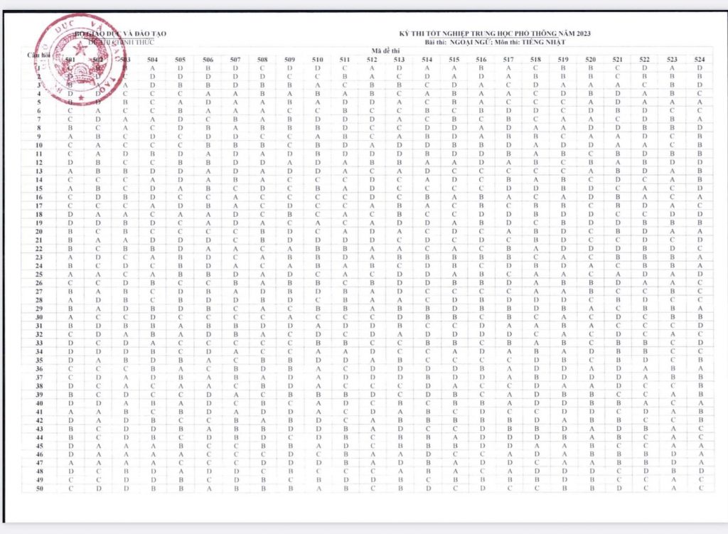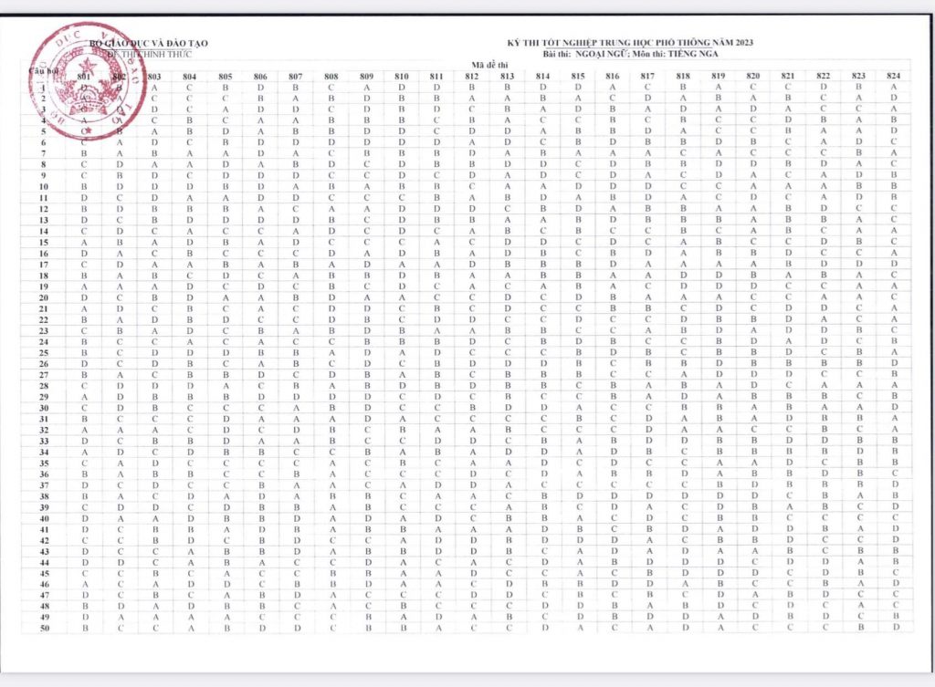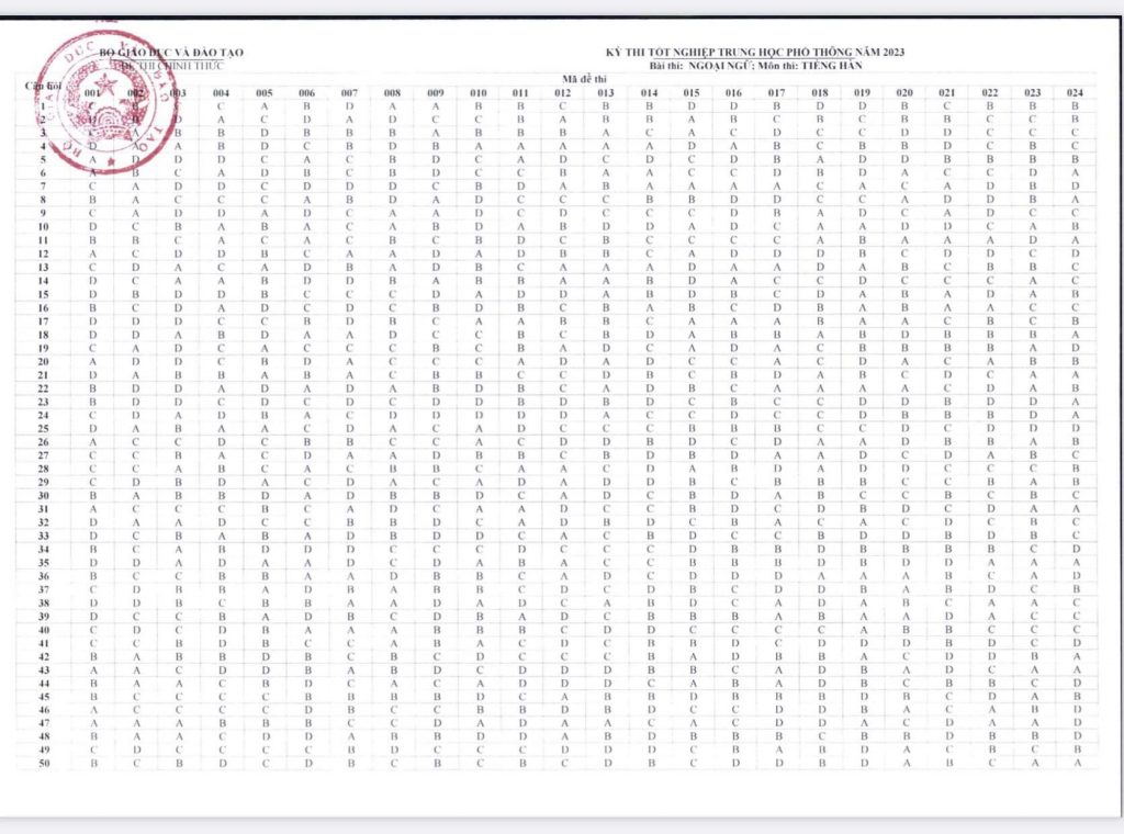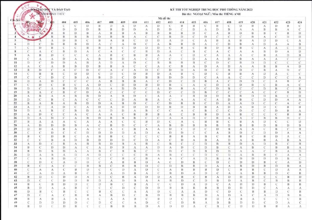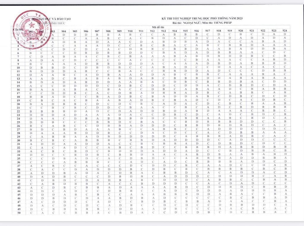 Dưới đây là đáp án các môn thi trắc nghiệm kỳ thi THPT 2023