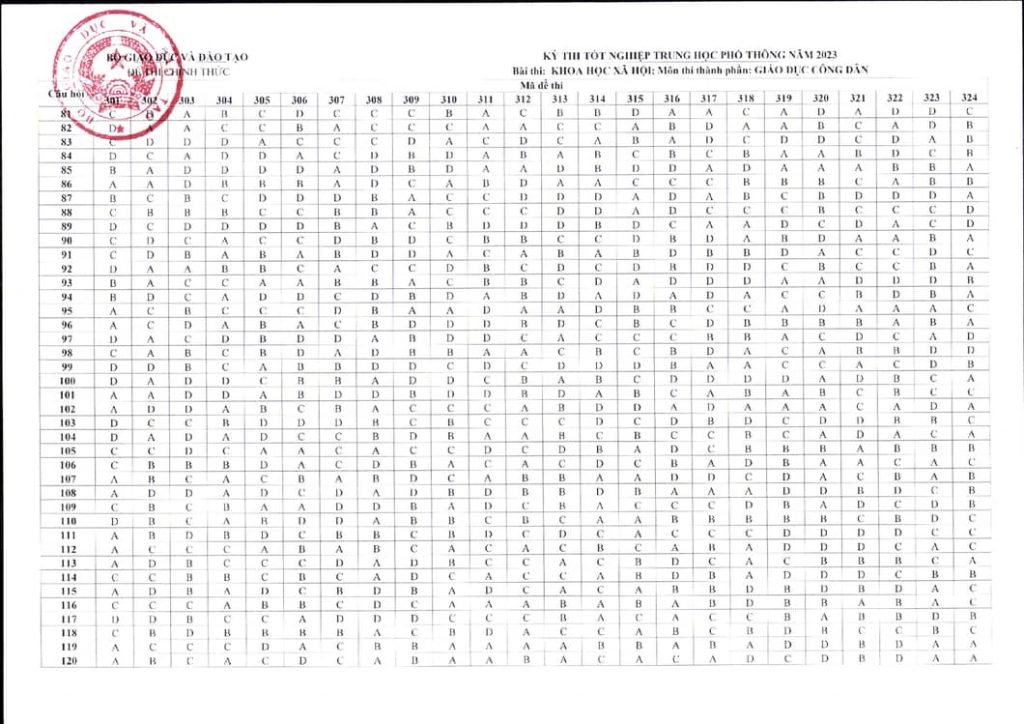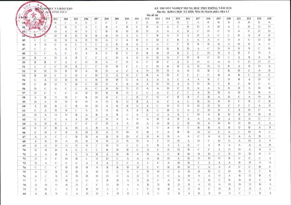 Bộ GD&ĐT chính thức công bố đáp án các môn thi trắc nghiệm kỳ thi tốt nghiệp THPT 2023