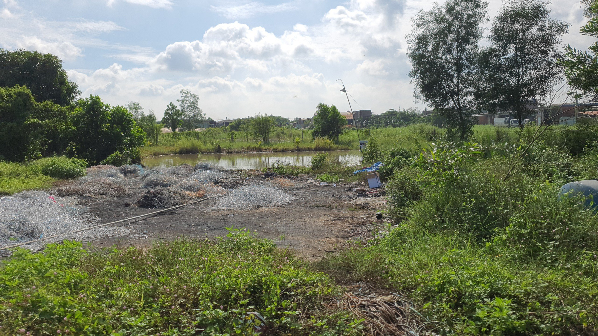 Hàng xóm không thấy hai bé trai đâu, trong khi ao nước gần nhà nổi lên chiếc dép nên báo lại cho chị Bọ.