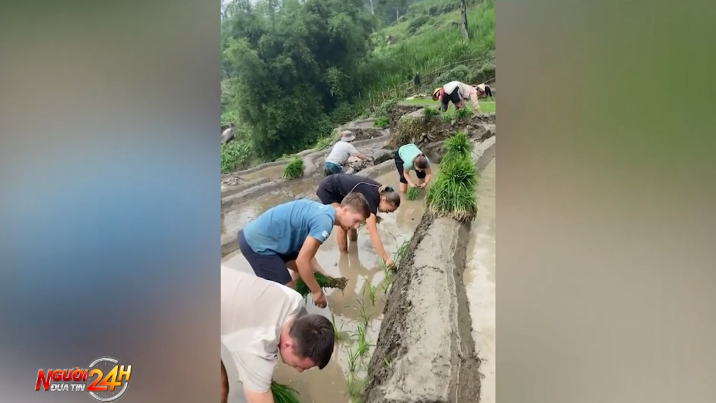 Ngoài trải nghiệm trekking, anh Sấu còn hướng dẫn nhóm khách du lịch này tới khu ruộng ở thung lũng Mường Hoa cấy lúa. Nhóm khách rất thích thú với hoạt động này, ai cũng vui vẻ và hào hứng.
