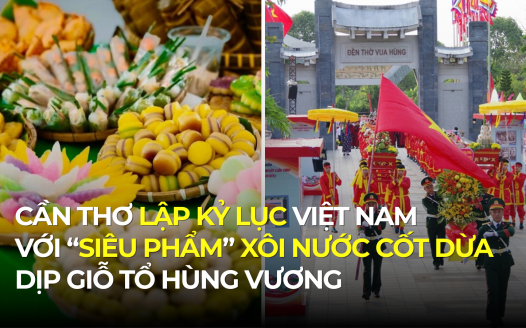 Xã hội Ngày 13/4, Sở VH-TT-DL TP. Cần Thơ thông tin về kế hoạch tổ chức Giỗ tổ Hùng Vương và lễ hội bánh dân gian Nam bộ lần thứ 13 năm 2026 diễn ra từ ngày 22/4 đến 1/5 sắp tới. Điểm nhấn của lễ hội năm nay là màn xác lập kỷ lục Việt Nam với mô hình bản đồ Việt Nam làm từ xôi nước cốt dừa, các nghi thức lễ truyền thống cùng hoạt động phục vụ 2.000 suất cơm chay miễn phí cho du khách thập phương.