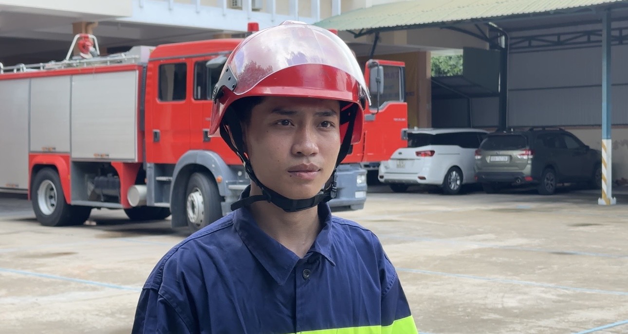 Chiến sĩ Trần Văn Quỳnh năm nay mới tròn 20 tuổi, vừa được huấn luyện xong và chuyển đến Phòng Cảnh sát PCCC – CNCH Công an tỉnh Bình Thuận cách đây 3 tháng. Đây là lần đầu tiên anh Quỳnh tham gia cứu hỏa một vụ cháy lớn.