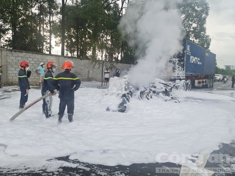 Nhận tin báo, Cảnh sát PCCC tỉnh Bình Dương điều 2 xe nước tới hiện trường và nhanh chóng dập tắt ngọn lửa sau đó ít phút.