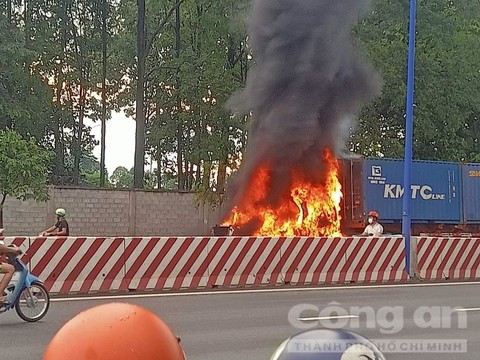 Khi đến đối diện bệnh viện Quân đoàn 4, thuộc phường Bình Hoà, TP Thuận An, tỉnh Bình Dương thì bất ngờ phát hoả ở phần đầu xe.