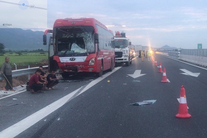 Thời điểm trên, xe khách 16 chỗ đang dừng ở làn khẩn cấp, hướng Bắc – Nam, bất ngờ bị xe khách giường nằm (BKS: 77B-012.83) chở hơn 40 khách đang lưu thông cùng chiều tông vào từ phía sau.